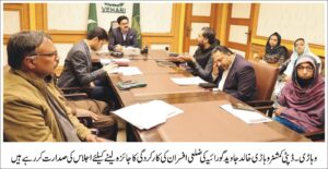 وہاڑی (عبدالغفار)ڈپٹی کمشنر وہاڑی خالد جاوید گورائیہ کی زیر صدارت ضلعی افسران کا اجلاس ہوا۔اجلاس میں ضلعی محکموں کی کارکردگی کا جائزہ لیا گیا ڈپٹی کمشنر خالد جاویدگورائیہ نے تمام افسران کو اپنی کارکردگی مزید بہتر بنانے کی ہدایت کی ڈپٹی کمشنر خالد جاوید گورائیہ نے کہا کہ وزیراعلیٰ پنجاب مریم نواز شریف کے احکامات پرسروس ڈیلیوری کو بہتر بنانا اولین ترجیح ہے تمام متعلقہ محکمے ٹاسک کو بروقت مکمل کریں ستھرا پنجاب کے تحت شہر ودیہات صاف ستھرے نظر آنے چاہئیں بیوٹیفکیشن پلان کے تحت شہروں کو خوبصورت بنانے کیلئے اقدامات تیز کئے جائیں۔ پی ایچ اے پارکس اور گرین بیلٹس کو خوبصورت بنائے۔انہوں نے مزید کہا کہ پنجاب صاف پانی اتھارٹی فلٹریشن پلانٹس کو جلد فنگشنل کرے واسا سیوریج، واٹر سپلائی کو بہتر بنائے اور مین ہولز کور لگائے۔انسداد تجاوزات، انسداد سموگ اور پلاسٹک کے استعمال کی روک تھام کیلئے متحرک ہو کر کام کیا جائے ڈپٹی کمشنر نے مزید کہا کہ منی پٹرول پمپس اور گیس ری فلنگ پوائنٹس کے خلاف کریک ڈاؤن کیا جائے تعلیمی اداروں، ہسپتالوں اورترقیاتی سکیموں کی انسپکشنزباقاعدگی سے کریں پیرا فورس تجاوزات کا خاتمہ اور اشیاء خوردونوش کی مقررہ نرخوں فروخت یقینی بنائے۔ ڈپٹی کمشنر خالد جاوید گورائیہ نے مزید کہا کہ وال چاکنگ کا خاتمہ اور سڑیٹ لائٹس کو فنگشنل کیا جائے کلینک آن وہیلز/فیلڈ ہسپتال سمیت تمام ہسپتالوں میں سروس ڈیلیوری میں کوتاہی برداشت نہیں کی جائے گی بس اسٹینڈز کی بھی انسپکشنز کی جائیں مسافروں کو بہترین سہولیات کی فراہمی ترجیح ہے۔کھادوں اور زرعی ادویات کی قیمتیں بھی چیک کی جائیں۔ انہوں نے مزید کہا کہ تمام محکمے اپنی روزانہ کی کارکردگی کو ویڈیو پیکج میں شکل میں ڈاکوامنٹڈ کریں۔ ہر محکمہ اپنی سرگرمیوں پر مبنی ایک ہفتے میں کم از کم اعلیٰ کوالٹی کے دو ویڈیو پیکج تیار کرے گا۔ حکومت پنجاب کے عوامی فلاح کے منصوبوں اور انیشٹوز کو ویڈیوز پیکجز کے ذریعے اجاگر کیا جائے۔ اس موقع پر اے ڈی سی جنرل غلام مرتضی، اے سی وہاڑی انعم اکرم،ڈپٹی ڈائریکٹر ایگری کلچر رانا محمد عارف، ایکسین ہائی وے عمیر لطیف، ڈپٹی ڈائریکٹر پبلک ریلیشنز میاں نعیم عاصم،ڈی ای او ایلپمنٹری ایجو کیشن عندلب اصغر،ڈی ڈی ڈویلپمنٹ محمد افضال، ایم ڈی واسا عاصم عبا س رضا، ڈسٹرکٹ ایکسائز اینڈ ٹیکسیشن آفیسر رائے بشیر احمد کھرل، ڈی او پاپولیشن ویلفیئر آفیسر غفران ثاقب،سیکرٹری آر ٹی اے کامران انور، ای اے ڈی اے مدیحہ غفار، ڈپٹی ڈائریکٹر پنجاب فوڈ اتھارٹی ماہا سعید،ایس این اے منیب احمد،آپریشن منیجر ستھرا پنجاب کرن خان اور دیگر افسران موجود تھے