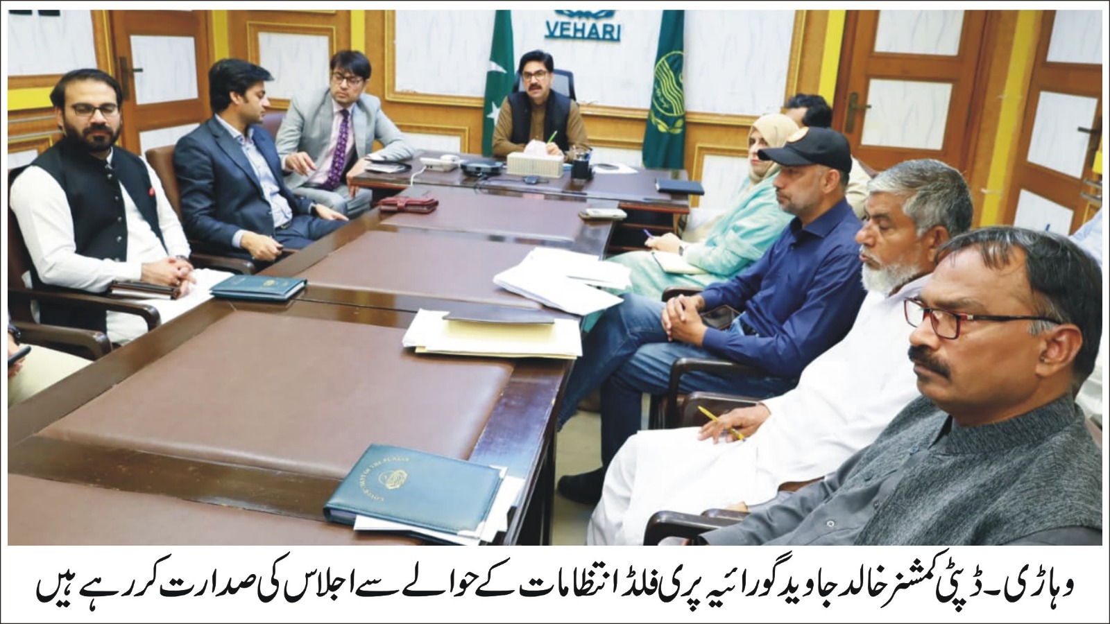 وہاڑی(عبدالغفار) ڈپٹی کمشنر وہاڑی خالد جاوید گورائیہ کی زیر صدارت پری فلڈ انتظامات کے حوالے سے اجلاس منعقد ہوا۔ اجلاس میں ممکنہ سیلابی صورتحال سے نمٹنے کے لیے پیشگی اقدامات، متعلقہ محکموں کی تیاریوں، ہنگامی پلان اور دستیاب وسائل کا تفصیلی جائزہ لیا گیا۔اجلاس میں گزشتہ سال سیلابی صورتحال سے نمٹنے کیلئے کئے گئے اقدامات بارے بھی تفصیلی بریفنگ دی گئی۔ ڈپٹی کمشنر خالد جاوید گورائیہ نے کسی بھی ہنگامی صورتحال سے نمٹنے کے لیے پیشگی منصوبہ بندی و انتظامات مکمل رکھنے کا حکم دیا۔انہوں نے اربن فلڈنگ سے بچاؤ کیلئے بھی تمام ممکنہ انتظامات کرنے کی ہدایت دیتے ہوئے کہا کہ ممکنہ خطرات سے نمٹنے کے لیے پیشگی انتظامات کو ہر صورت مکمل رکھا جائے۔ ڈپٹی کمشنر نے ہدایت کی کہ پچھلے سال کے تجربات کو مدنظر رکھ کر سیلاب سے نمٹنے کیلئے مزید بہتر حکمت عملی سے اقدمات کئے جائیں۔ڈی سی وہاڑی خالد جاوید گورائیہ نے دریاؤں کے بند کو مضبوط کرنے کیلئے تمام متعلقہ محکموں کو فوری اقدامات کرنے کی ہدایت کرتے ہوئے کہا کہ تمام محکمے بہترین کوارڈینیشن سے کام کریں۔ انہوں نے مون سون کے پیش نظر شہری علاقوں میں بروقت انتظامات مکمل کرنے اور سیور لائنوں اور مین ہول کی ڈسلٹنگ ترجیح بنیادوں پر مکمل کرنے کی ہدایت بھی کی۔ڈپٹی کمشنر نے کہا کہ خدانخواستہ دوبارہ سیلابی صورتحال میں انسانی جانوں اور مویشیوں کا تحفظ اور املاک کا کم سے کم نقصان یقینی بنانا اولین ترجیح ہے۔اجلاس میں ایڈیشنل ڈپٹی کمشنر ریونیو بابر سلیمان، ایڈیشنل ڈپٹی کمشنر جنرل غلام مرتضیٰ، اے سی وہاڑی انعم اکرم، اے سی میلسی سعد بن خالد، ایس ڈی ای او پیرا وقاص انجم، ڈی ڈی ڈویلپمنٹ محمد افضال، سی ای او ہیلتھ ڈاکٹر فہد وحید، ڈی ڈی زراعت توسیع رانا محمد عارف، ڈی ڈی پی آر میاں نعیم عاصم، ایڈیشنل ڈائریکٹر لائیو سٹاک ڈاکٹر محسن علی، ایم ڈی واسا عاصم عباس رضا، ڈی ڈی لوکل گورنمنٹ شہزاد بشیر، ایس این اے منیب احمد، محکمہ انہار اور دیگر افسران موجود تھے۔
